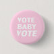 Bóton Redondo 2.54cm "vote baby vote", rosa claro branca