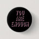 Show support for mental health awareness with this bold red “You Are Enough” button pin.