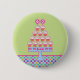 Divertimento e 60th botão colorido do aniversário. Caracteriza uma montanha dos cupcakes em um suporte com o número 60 na parte superior. Grande botão a vestir-se neste aniversário importante do marco miliário. Ideal de travamento na moda, feminino e do olho do design para uma mulher que comemore a vida e os amigos. Beira do teste padrão de bolinhas na parte inferior.