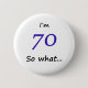 Um botão de excelente para alguém comemorando o 70 aniversário. Ela vem com uma citação engraçada que eu tenho 70 e daí!, e é perfeita para uma pessoa com senso de humor.