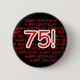 75th design feliz preto, vermelho, e branco do aniversário em 75th t-shirt do aniversário, em cartões, em canecas, em botões, e em outros 75th artigos do aniversário.