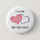 Botão romântico com dois corações cor-de-rosa e azuis ilustrando as duas falésias de um casal hetero. Este botão faz parte de um conjunto; na versão correspondente (ela+HE) o coração oposto é preenchido com cor azul. Presente perfeito para qualquer ocasião relacionada a parceiros. Há 6 combinações de camisas, canecas e botões disponíveis no KreaturShop.