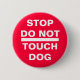 Porque um alimentador de cão do serviço você enfrenta frequentemente o problema das pessoas que desejam tocar em seu cão do serviço, quando trabalhar. Faça claro a qualquer um que isto não é aceitável vestindo este botão. Um fundo vermelho brilhante agarra sua atenção, quando as letras corajosas soletrarem para fora a "PARADA NÃO TOCAM NO CÃO"