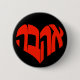 Pin que caracteriza um calligram do ahava, amor no hebraico, na forma de um coração. Texto vermelho em um fundo preto.