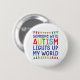 "Alguém com autismo ilumina meu mundo" para a Consciência do Autismo. Uma forma excelente de mostrar seu apoio vestindo este botão para Walks, Runs, Maratonas, Fundraisers, Eventos de Caridade para sua Escola, Escritório etc. Perfeito para vestir durante o Mês de Consciência do Autismo em abril. Apresentando uma tipografia bonita e colorida em azul, vermelho, verde, laranja e amarelo com cordas coloridas de luz, este botão com uma mensagem positiva é uma forma excelente de chamar a atenção para esta importante questão. ©TeacherTribeMerch