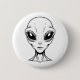 Este botão apresenta uma ilustração mínima de alienígena em preto e branco. A alienígena tem olhos grandes e expressivos que olham para fora, captando atenção com sua intensidade, mas sua boca permanece simples, dando a ela uma aura misteriosa e enigmática.