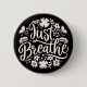 Respire os pinos do crachá do botão. A mentalidade pratica flores florais, preto e roupa estética bege. Respire fundo no treinador de professores de meditação de ioga calmando ansiedade, citando um lembrete respiratório para as meninas.