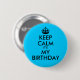 Bóton Redondo 5.08cm Aqua Blue Mantenha Calmo É o meu aniversário