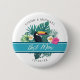 Botão de 'Melhor Amigo' colorido com uma faixa azul-turquesa bordeada por flores de hibisco em aquarela, um tucano ousado e folhas de palmeira exuberantes. O fundo branco é opcional e pode ser alterado se preferido. Este design tropical é perfeito para casamentos de verão, praia e tropicais, aniversários e outros eventos especiais. Procure ID577 para ver produtos correspondentes.