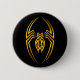 Um design da aranha do ferro fundido com pontos afiados e linhas à moda simples. Este aracnídeo do metal tem quatro de seus pés que alcançam acima e quatro que aponta abaixo de criar e do teste padrão agressivo, simétrico. A cor amarela da aranha e do fundo preto puro cria um contraste impressionante neste botão.
