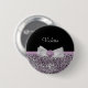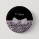 Um botão impressão de chita roxo feminino com um arco branco cinza e cinza embelezado com pérolas bonito e uma fita de rosetas no centro. Qualquer garota que ama roxo e preto adoraria que seu nome fosse adicionado a esse design de nome de etiqueta de impressão animal em moda e na moda. Imagem impressa plana, não fita real.
