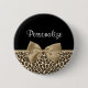 Um botão impressão de jaguar preto e castanho-claro, com uma fita colorida de areia presa a um arco giro. Personalize este nome de etiqueta de impressão animal na moda, adicionando o nome da sua adolescente. Imagem impressa plana, não arco real.