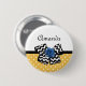 Adicione uma vibração giratória ao seu estilo pessoal com este botão de padrão de bolinhas branco e amarelo giro com um arco chevron preto e branco de tendência e um rosa de fita azul-chic. Faça com que este retrato amarelo e azul encontre a design moderna personalizada adicionando o nome da sua adolescente. Imagem impressa plana, NÃO fita e arco de rosetas reais.