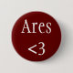 Um crachá vermelho de "coração Ares". Ares era o antigo deus grego da guerra e das batalhas.