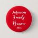 Estes botões de reagrupamento familiar são vermelhos brilhantes. Eles têm texto branco. Você pode usá-lo para mostrar uma mensagem personalizada como o sobrenome da sua família e o ano em que você está tendo a reunião da família. (Mostrada: Johnson Family Reunion 20xx) As palavras reagrupamento familiar estão em um roteiro.