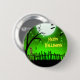 Um esqueleto assustador caminhando em um quintal com lua de cheio e fundo verde do céu. Design para os botões do Dia das Bruxas.