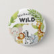 Este botão apresenta uma bela ilustração dos animais da selva. As palavras "Selvagem" são escritas através do botão com o nome da criança.