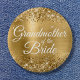 Um botão de vidro feminino para a avó da noiva. Todo o texto elegante do estilo caligrafia moderno é personalizável. O plano de fundo apresenta uma folha de rosa dourada falsa com brilho falso cintilante. Estes elementos digitais são impressão como uma foto.