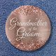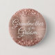 Um botão de vidro feminino para a avó do noivo. Todo o texto elegante do estilo caligrafia moderno na design de tipografia é personalizável. O plano de fundo apresenta rosa dourado falso e folha de papel cor-de-rosa pincelada com brilho falso cintilante. Estes elementos digitais são impressão como uma foto.