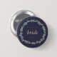 Identifique os principais jogadores no seu chá de panela, especialmente a noiva! — com nossos elegantes botões florais quentes e doces. Design apresenta um fundo azul de meia-noite e uma coroa de flores cor-de-rosa pálidas e folhas verdes de sábado, e "noiva" na coordenação das letras itálicas cor-de-rosa-pastel.