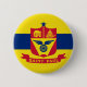 Botão redondo com bandeira da cidade de Rua Paul, Minnesota; bandeira com três faixas horizontais de azul e amarelo com emblema vermelho no centro