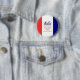 Botão redondo com pavilhão da cidade de Cleveland, Ohio; bandeira com três bandas verticais de vermelho, branco e azul com selo da cidade no centro