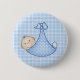 Um fundo verificado azul pálido com um bebé swaddled em uma cobertura azul em botões customizáveis do bebê e os ímãs, aperfeiçoam para chás de fraldas ou anunciação da chegada nova do bebé.