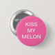 O Pin cor-de-rosa do botão com texto branco lê: "BEIJE MEU MELÃO." Às vezes as coisas pequenas fazem um impacto grande! Um acessório encorajador para guerreiros do cancro da mama e do chemo. O botão pode ser vestido na roupa, chapéus, correias, sacolas, e mais. Um presente pensativo e barato com coração que pode viajar às sessões do chemo ou da radiação, ou onde quer que você vai. Uma adição perfeita para um saco do presente!