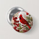 Adornamento Artístico: Botão de Berries Vermelhos de Pássaro Cardeal Norte. Adicione um toque de charme e elegância da natureza ao seu traje com este cúmplice, com o cardeal icônico em meio a morangos vermelhos.