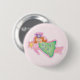 Botão redondo com a imagem de uma fada de aniversário reluzente, varinha de desejo de aniversário em mãos e vestida com um vestido verde e coroa roxa sobre um fundo de bolinhas cor-de-rosa suave. Consulte chaveiro de botão básico correspondente e colar. Veja a coleção inteira de botões e pinos de aniversário em TOUCHES ESPECIAIS | Seção Favoritos para festas.