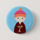Bóton Redondo 5.08cm Boneca de Kokeshi com camélia