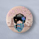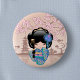 Bóton Redondo 5.08cm Boneca Keiko Kokeshi - Rapariga Kimono Geisha Azul