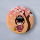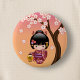 Bóton Redondo 5.08cm Boneca Sakura Kokeshi - Garota Geisha em Pêssego