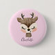 Botão de rena-bebê cor-de-rosa, doce, giro e esfarelado, com seu próprio nome personalizado.