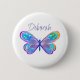 Bonito botão azul e borboleta roxa. Adicione um nome na área de personalização.