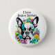 Bóton Redondo 5.08cm Boston Terrier e Flowers