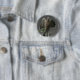 Este botão brilhante apresenta uma fotografia de uma bela pomba colada, amontoada em alguns trilhos, com ambas as asas estendidas, dando-lhe a aparência de um anjo. Coloquei um filtro na foto para fazer o céu parecer cinza e zangado e criei um halo branco brilhando ao redor da pomba.