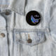 Uma borboleta azul deliciosa em um fundo preto. O botão pode ser personalizado com texto de sua escolha. Esta é arte wearable de um desenho de lápis colorido por Ann.