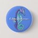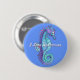 Personalize este crachá azul bonito do botão do pinback do cavalo marinho com seu próprio texto.