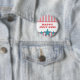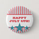 Na moda e vibrante Barras e Botão de Estirpes com faixas simples, vermelhas, brancas e azuis e uma fileira de estrelas de turquesa divertidas. Este botão de tendências é uma maneira excelente de mostrar seu lado patriótico em 4 de julho! Personalize este design com o texto escolhido. Para alterar fontes ou cores de texto, clique no botão "Personalizar". Esta design também é apropriada para o Dia Memorial!