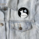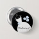 Bonito crachá de botões de tema noiva com um vestido estilizado de casamento e flores em tons de azul, preto e branco. Um design personalizável para você personalizar com seu próprio texto, imagens e ideias.