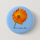 Crachá de nome. Personalize com suas informações pessoais. Calendário laranja com caule verde sobre fundo azul.
