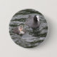 Este botão mostra uma fotografia de uma Coot e seu pintinho nadando em um rio de maré. A fêmea é uma cinza com mancha branca na cabeça e olhos vermelhos, enquanto o pequeno pintinho fluffy é uma cinza pálida com uma frente branca.