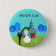 Este Botão de Casal de Casamento Retroativo Personalizável fará você ouvir sinos de casamento. A design de arte minimalista ao estilo de 1960 mostra uma noiva e um noivo no dia do seu casamento. O casal feliz parece bom o suficiente para estar em cima de um bolo de casamento. Mas não são. Estão em pé, relva verde. O debonário Sr. está vestindo um clássico smoking preto com gravata arco preta. Abaixem-se, senhoras! Ele está morto! Ele está segurando a mão de sua bela Sra., que parece positivamente radiante em seu comprimento de chá, vestido branco com cintura de forma e saia esfolada. Ela parece mesmo uma princesa com seu véu branco de casamento tiara e macio, que repousa em sua bonito cabeça loira. Ao lado deles, um caminho na grama leva à capela mais encantadora do mundo. A igreja tenra, teal e turquesa é o cenário perfeito para dizer: "Eu tenho!" Sim, aqui está a igreja. Aqui está a torre. Podemos apenas supor que, atrás dessas portas vermelhas brilhantes, duplas portas é uma sala cheia de pessoas esperando para compartilhar a felicidade desse casal. O cenário pitoresco também inclui quatro cartoons estilísticos em tons de azul. É um belo dia para um casamento, como podemos ver pelo céu aqua sem falhas. A única coisa que falta neste meio século moderno de design é o arroz, e podemos presumir que isso será futuro. Este design pode ser personalizado com nomes ou uma data.
