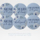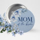Botão de Convidado de Casamento Azul Mãe da Noiva. Com belas flores em aquarela azul-acinzentado elegante em um fundo azul-acinzentado claro. Confira os outros botões correspondentes na coleção para outros convidados importantes, como a dama de honra, a noiva, as damas de honra e muito mais!