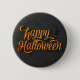 Feliz gato assustador de Halloween esculpido em um botão de jack-o-lanterno. É Orange e Black Happy Halloween com um gato preto gritante que pode ser personalizado para adicionar nomes, texto ou afirmações. Clique em "personalizar" para adicionar o seu. É excelente para presentes e guloseimas de Halloween divertidos!