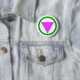 Botão redondo clássico com um símbolo de espaço seguro de orgulho hetero (triângulo rosa invertido rodeado por um círculo verde)