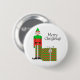 Feliz Natal! Um botão redondo com um elfo de Natal, versão de chevron. Personalize o botão com seu próprio texto entre outras opções.