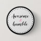 Botão engraçado "Incrível e humilde". Preto e rosa. Típica de script de tendências.