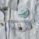 Bóton Redondo 5.08cm Botão Floral Branco Turquesa